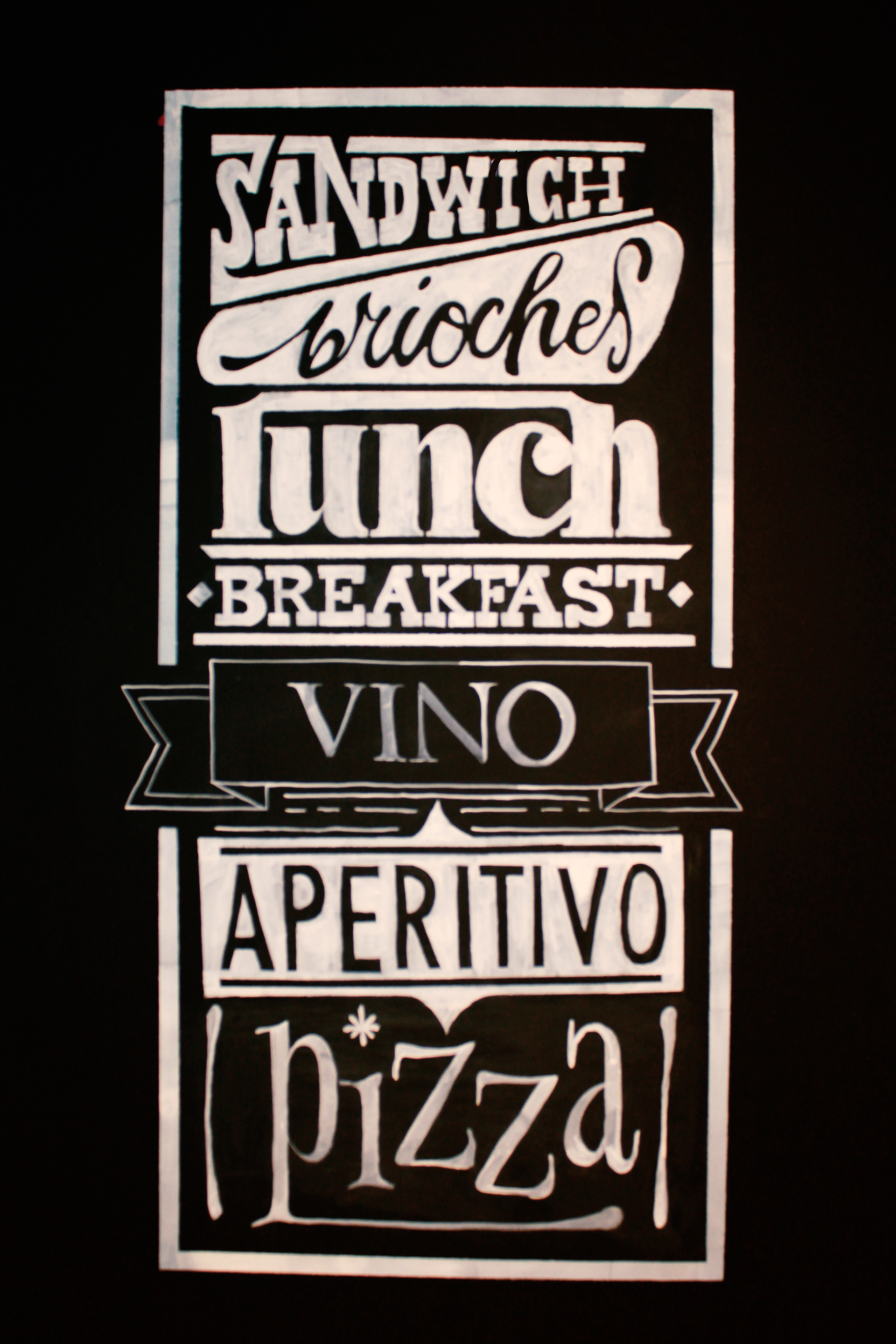 Handpainted lettering walls for a Cafè bar.